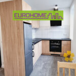 Świeżo wykończone mieszkanie w wysokim standardzie składa się z jasnego salonu, kuchni w zabudowie oraz łazienki.